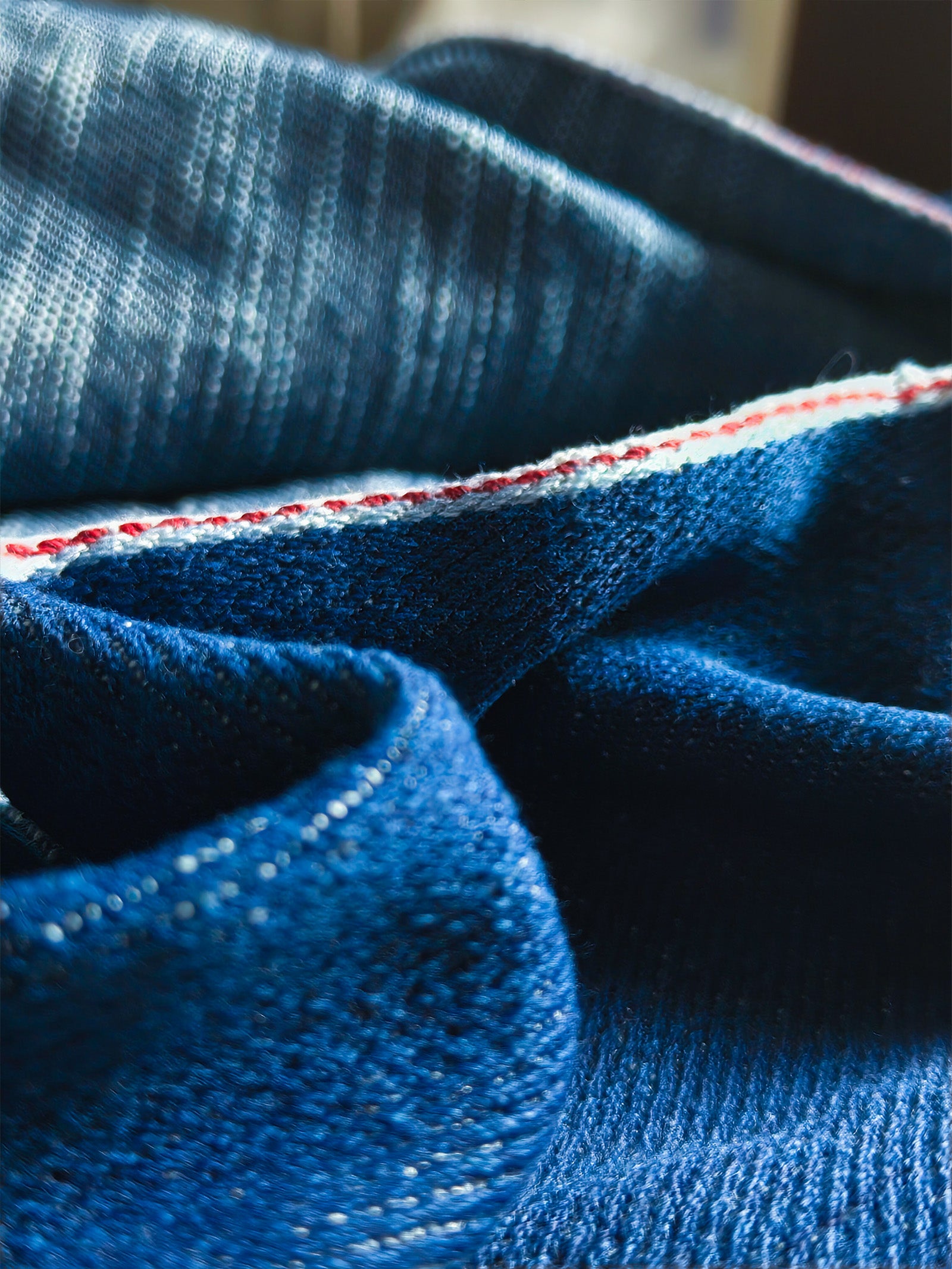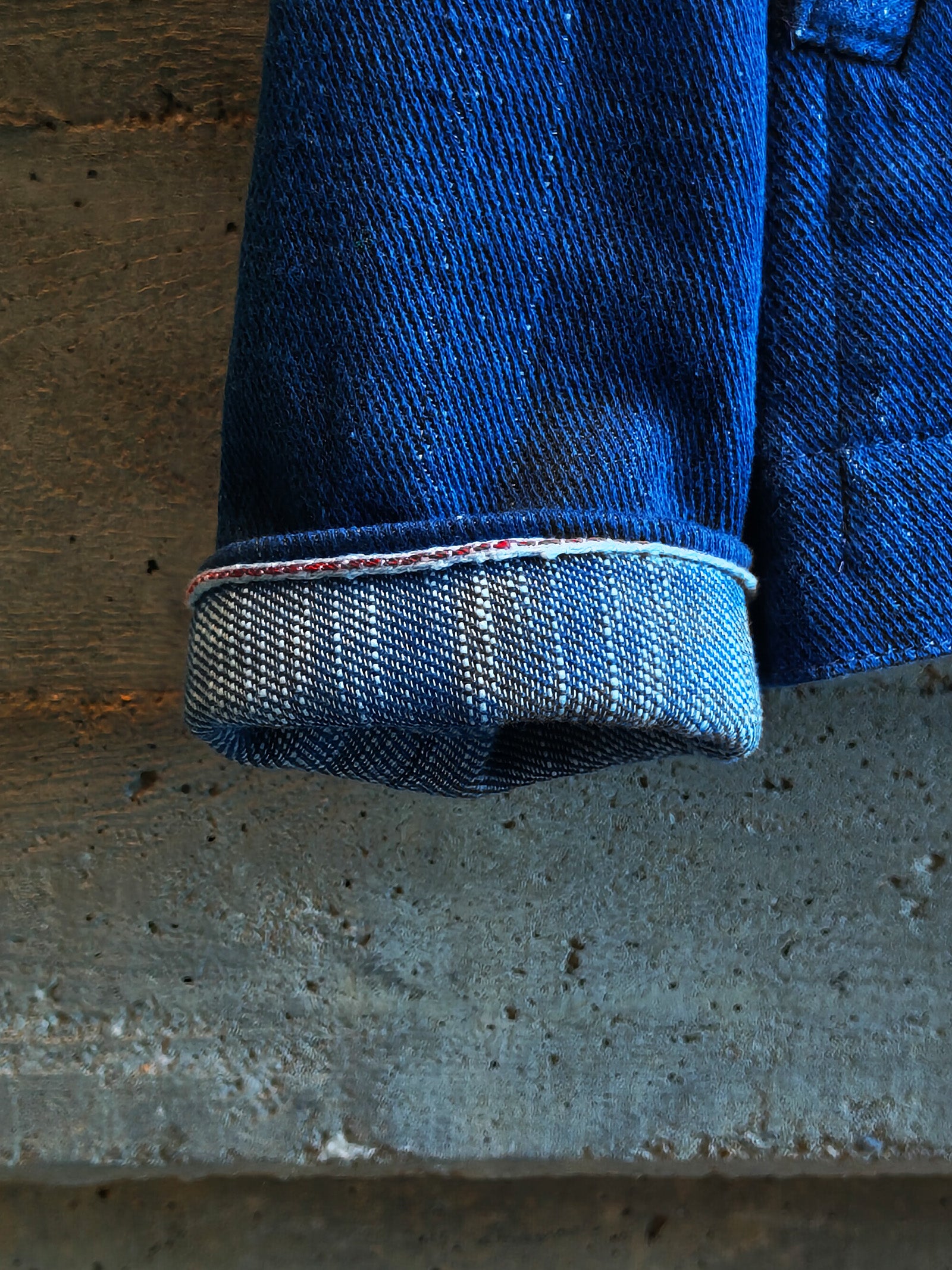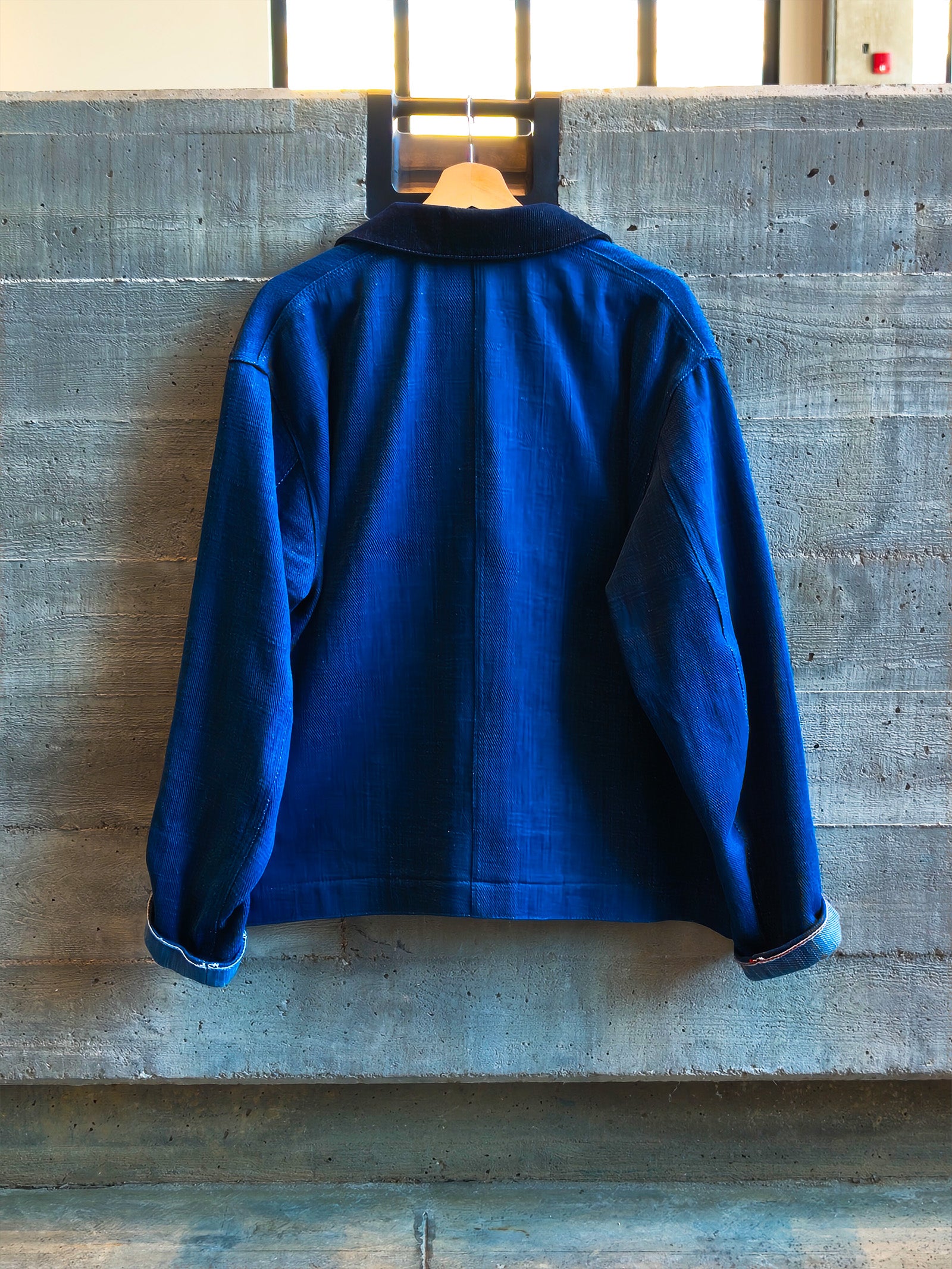 You read that right. Wear history with this handwoven denim jacket. David hand-dyed the yarns with natural indigo and wove them into a revived 1930s denim weave called "Double and Twist." The weft (the white yarns inside) is a beautiful slub yarn that gives the inside of the jacket a rolling wave movement—a nod to David's origins on the Pacific Ocean. Check out the behind-the-seams (hehe) of the hand indigo dyeing, weaving, and construction.