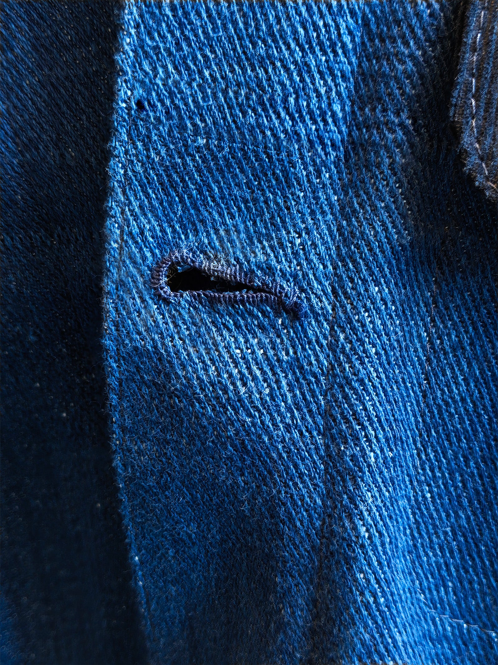 Mayan blue. The indigo used for this dye vat is grown and processed in El Salvador. Salvadoran indigo is not only the most vibrant, but it also lasts longer than any other indigo dye. Your jacket will stay vibrant longer than any other denim currently being produced.